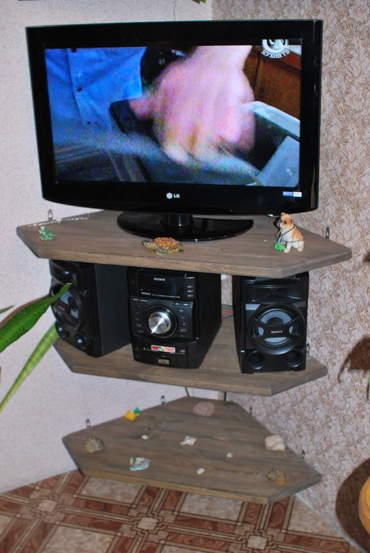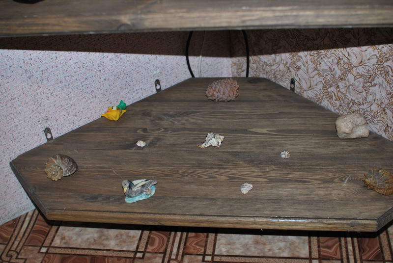 Полка угловая, материал массив сосны, покрытие биотекс,цвет орех.