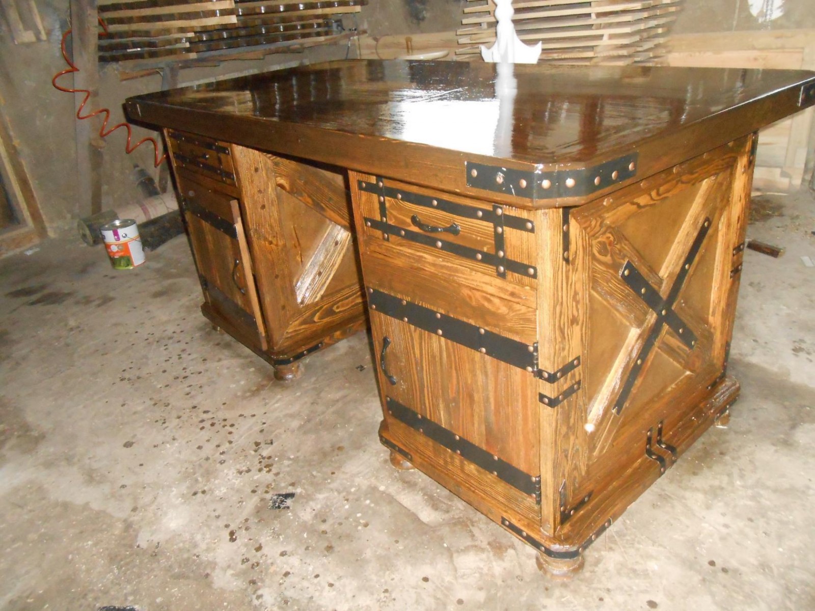 Стол письменный из массива сосны. Искусствено состаренный. Материал сосна, береза. Покрытие текстурол, лак. Цвет орех...